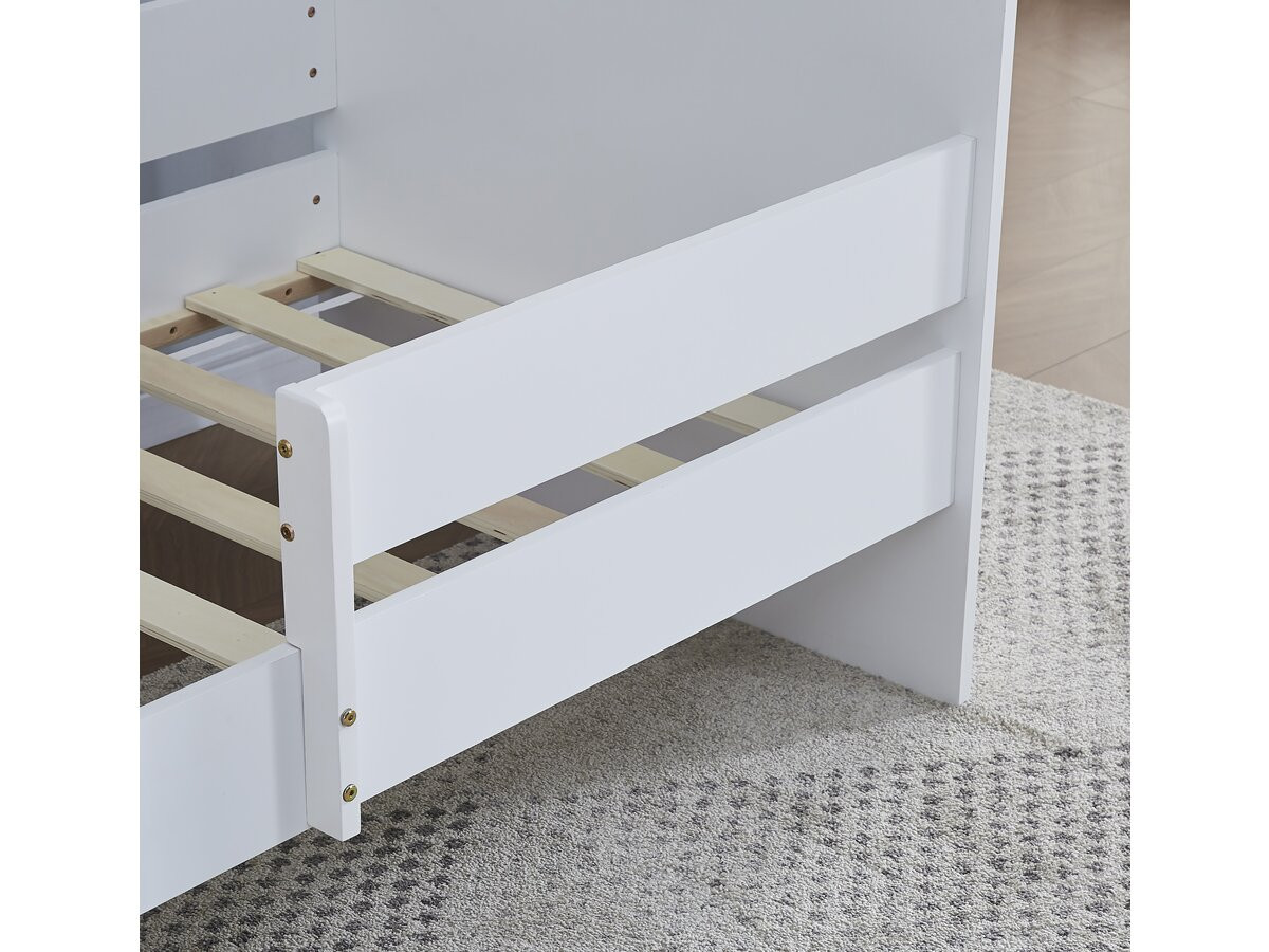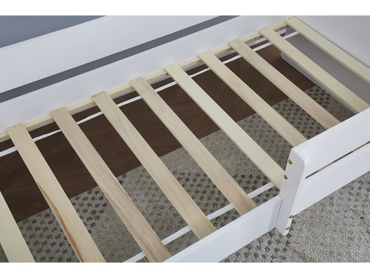 Lit simple enfant bois avec barrière « Victoria » – Bois – Blanc – 80 x 160 cm