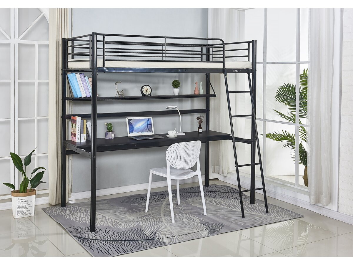 Lit mezzanine avec bureau « Alona » – 90 x 190 cm – Noir