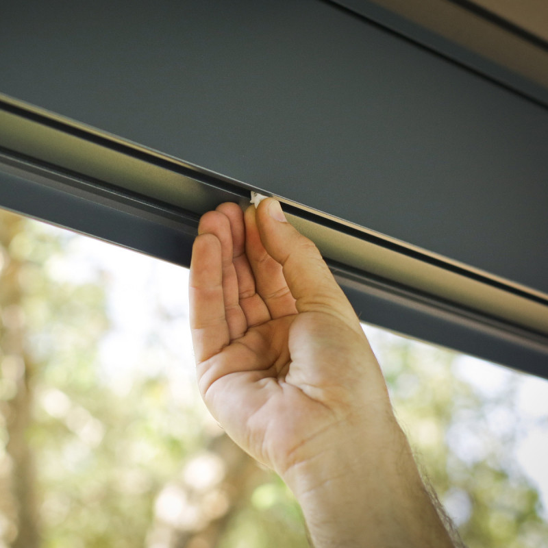 • Les profilés de toiture sont équipés de rails, pour le montage ultérieur facilité de rideaux ou de moustiquaires, non fournis